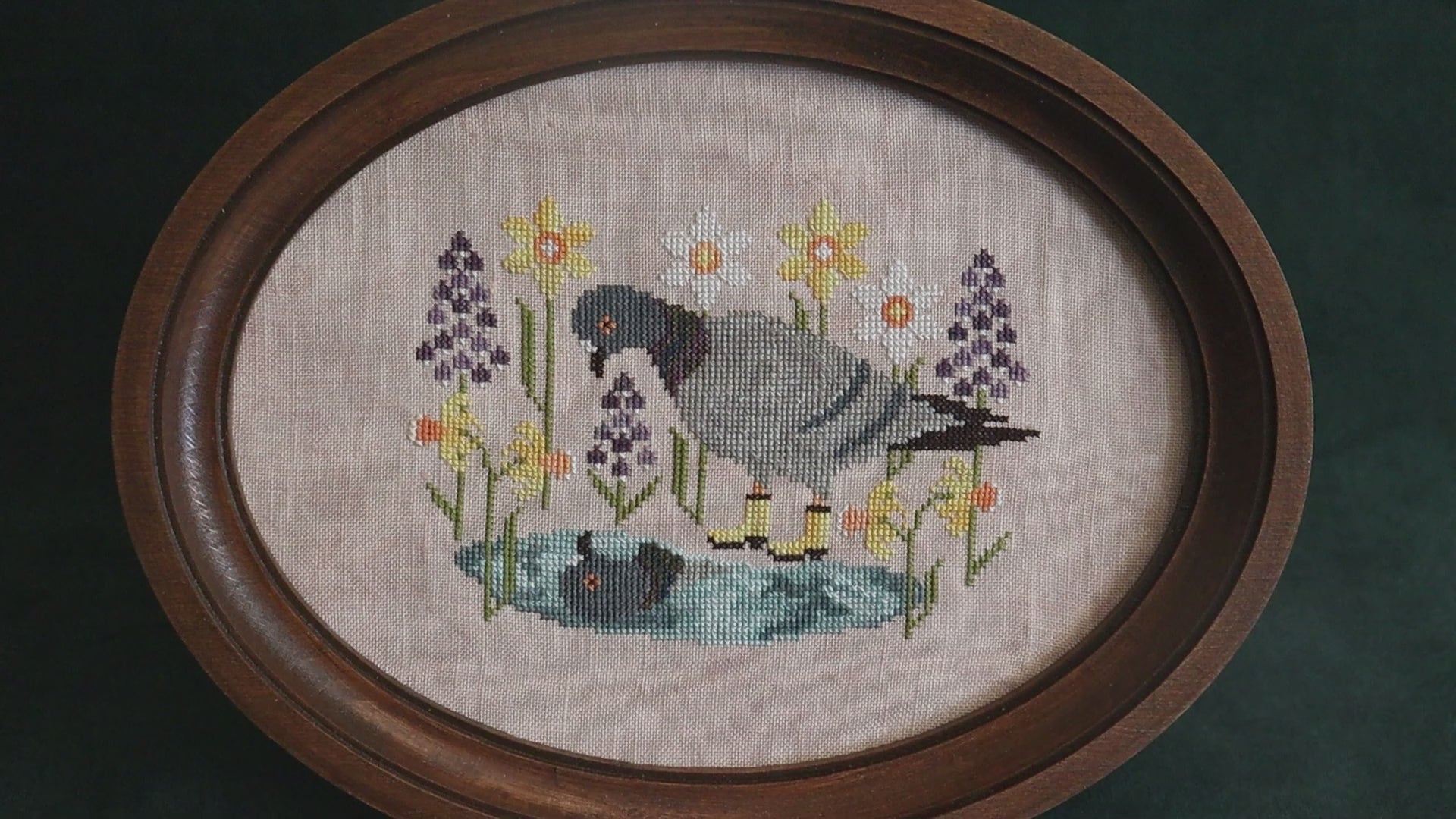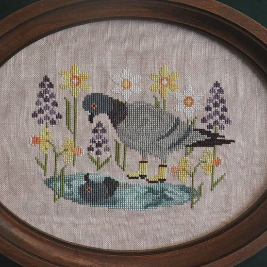 Note: I used a few lovely Cottage Garden Threads for this design, particularly in the pigeon's neck feathers and the puddle. There are lots of different ways to get fun effects with these, and I hope you will experiment!