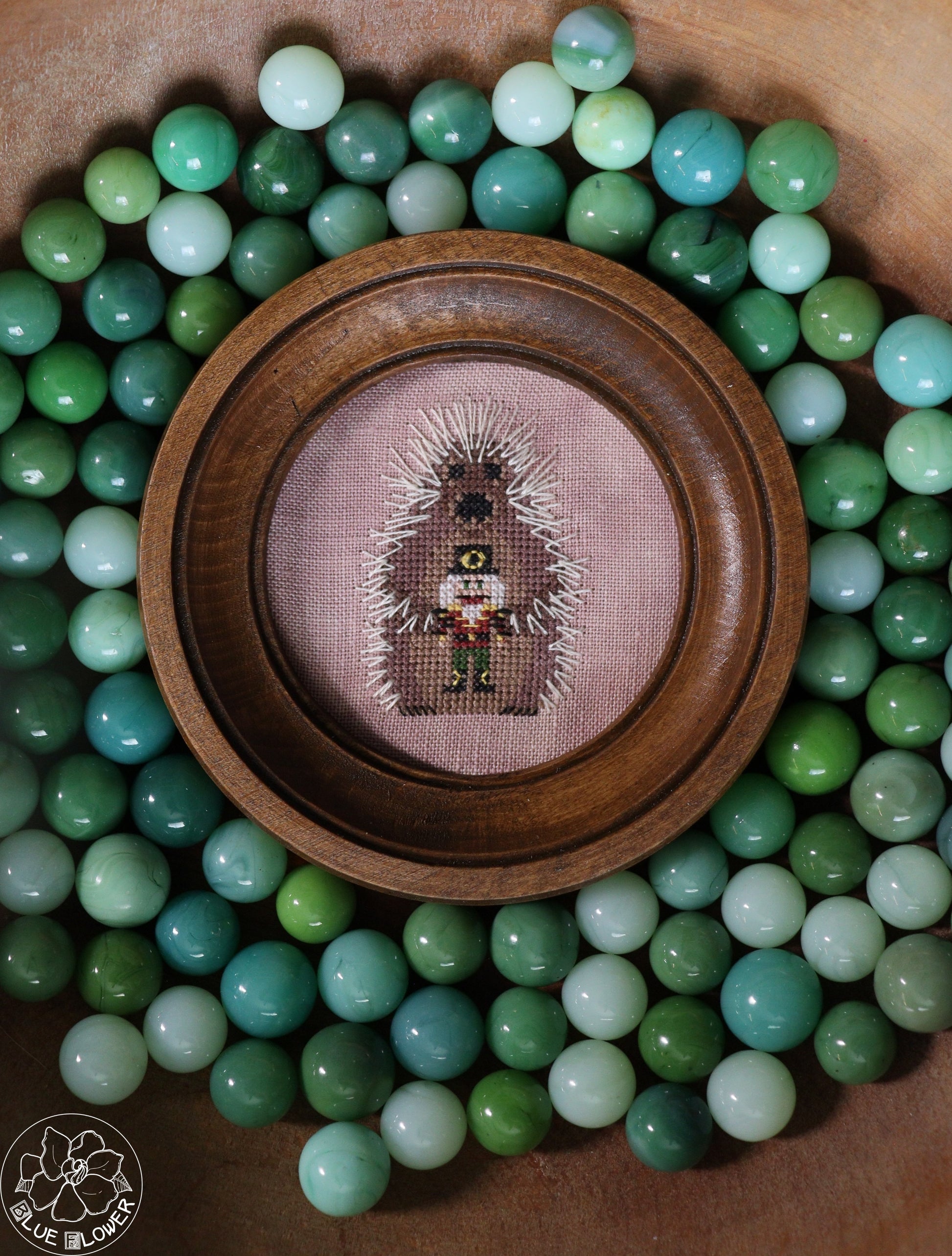 The model is stitched on 40 count "Plum Pudding" linen from Number12StitchCo. Stitch count is 33 wide x 44 high and the model is stitched with one strand of thread over two strands of linen.